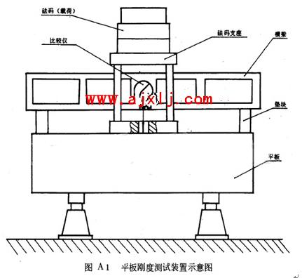 按以上圖A1在被測(cè)鑄鐵平板工作面上裝好試驗(yàn)裝置,在不加砝碼時(shí),將扭簧比較儀的測(cè)頭與平板工作面相接觸(為使測(cè)量準(zhǔn)確,可在測(cè)頭與平板工作面之間放一塊薄的量塊),并記下讀數(shù)。然后按表2規(guī)定的載荷在支架上施加砝碼,再記下此時(shí)扭簧比較儀的讀數(shù)。兩次讀數(shù)之代數(shù)差的 絕 對(duì) 值,即為該平板在額定載荷下的撓度值。